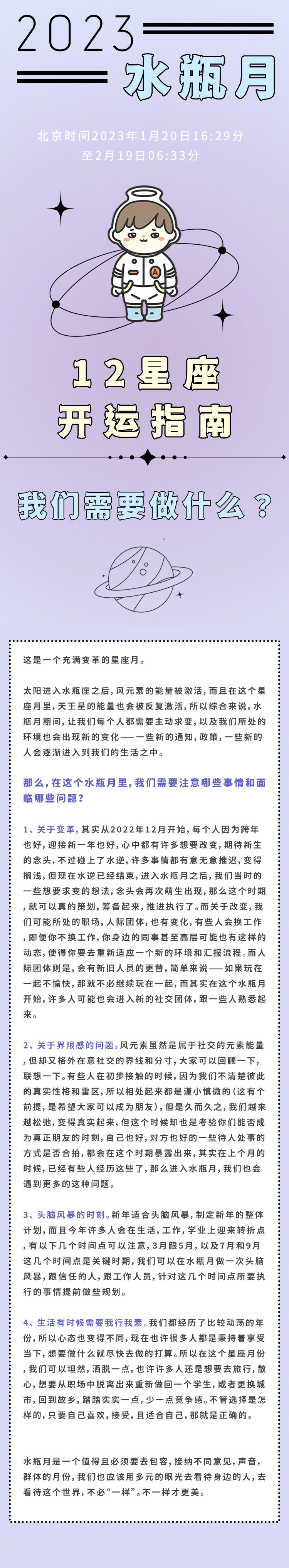 #新年好运指南# 我们将进入新的星座月——水瓶月。这是一个充满变革的星座月。