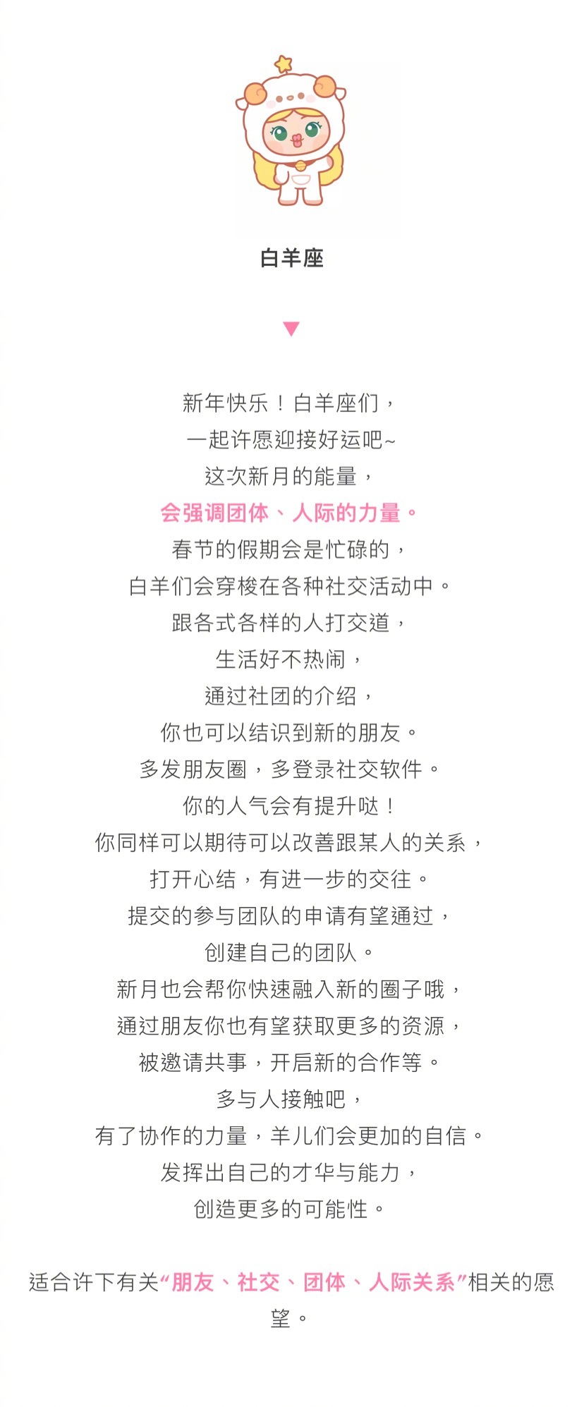 本次新月正值春节假期,我们正好有时间可以修整自我,调整自身状态。非常适合制定个人未来发展的相关计划哒,新的一年让我们坚定目标,去实现心中所盼!????#好运生活#