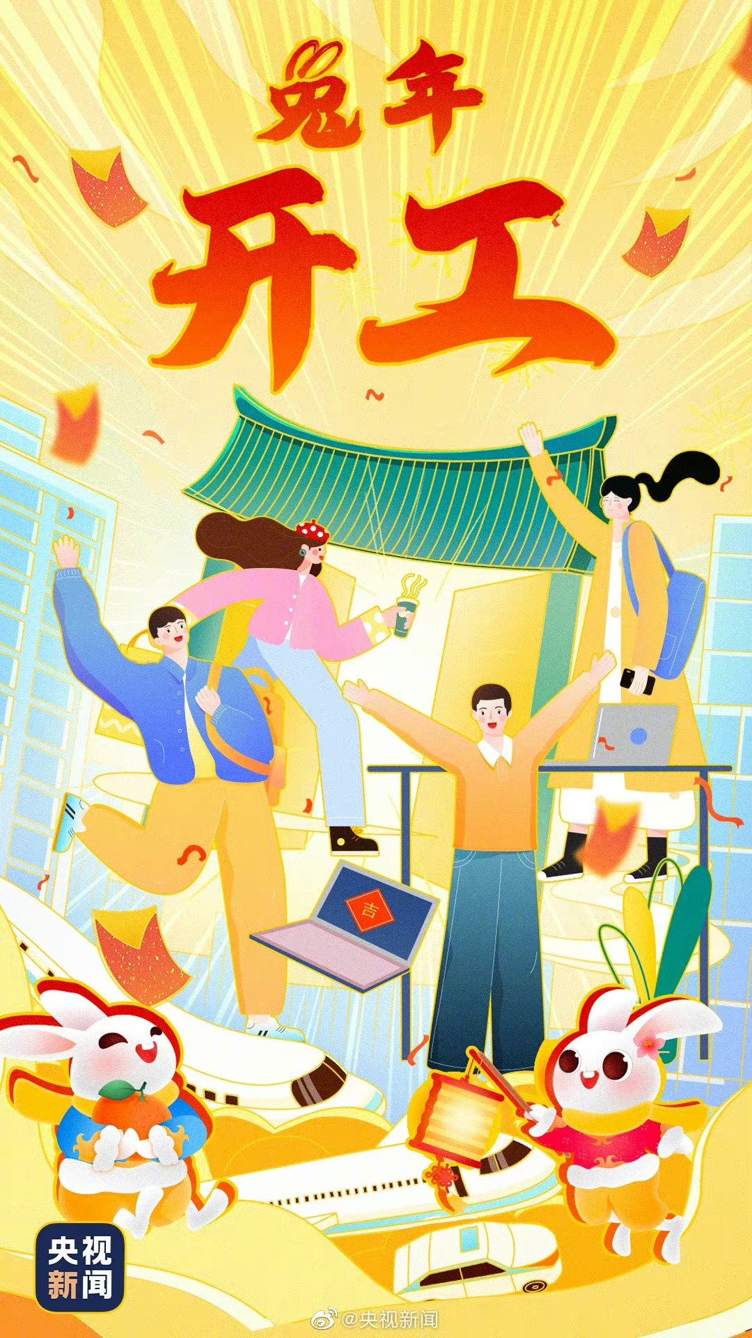 【#大年初七开工大吉# 祝你“钱”“兔”无量,大展宏“兔”![财源滚滚]】今天,#兔年第一个工作日#。新的开始,整理好心情,给自己加个油[加油]鼓足干劲,勇往直前,祝愿大家皆得所愿!#年后工作日状态#
