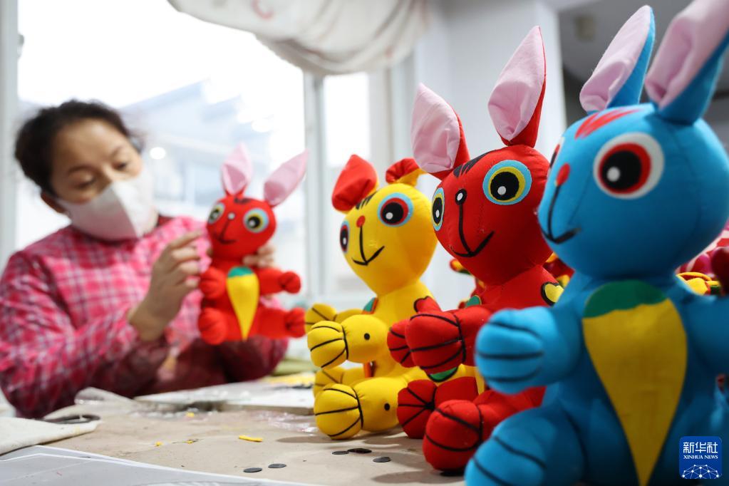 制作兔年手工艺品---农历兔年春节将至,以生肖兔为主题的手工艺品订单增多,需求旺盛。