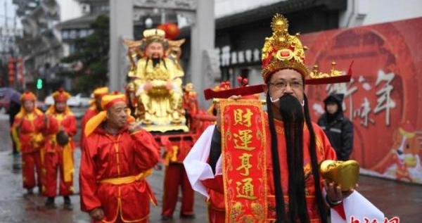 资料图:“财神”正在送大运。当日为农历正月初五,民间素有迎财神的传统习俗。中新社记者 王远 摄