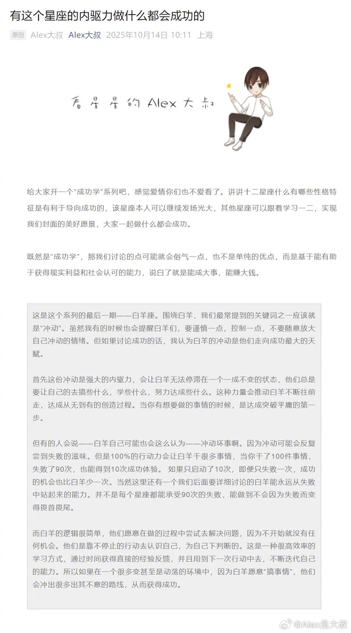 #星座# 给大家开一个“成功学”系列吧,感觉爱情你们也不爱看了。讲讲十二星座什么有哪些性格特征是有利于导向成功的,该星座本人可以继续发扬光大,其他星座可以跟着学习一二,实现我们封面的美好愿景,大家一起做什么都会成功。