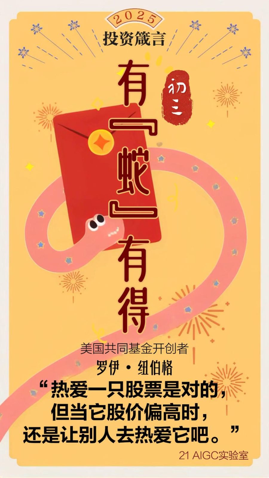 但财富不打烊,钱包鼓鼓涨!从除夕到初八,21世纪经济报道、21财经客户端、21AIGC实验室特意给您送上一组视频海报,运用AI技术画出小福蛇,内藏蛇年财富密码。衷心祝愿大家新的一年,投资决策皆如神助,钱途似锦,蛇来运转!
