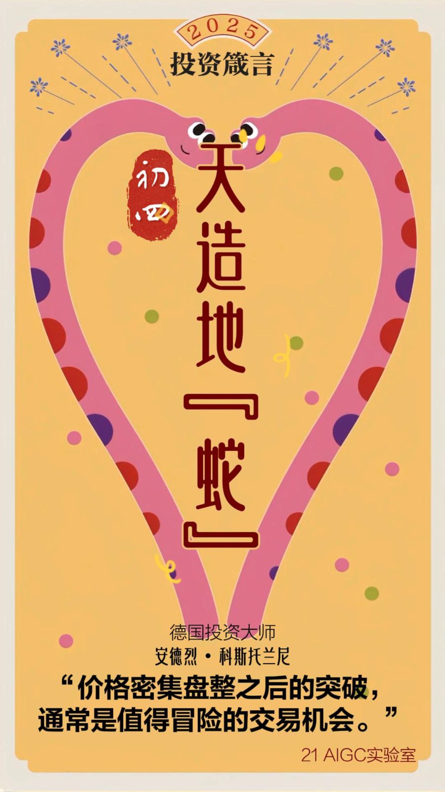 但财富不打烊,钱包鼓鼓涨!从除夕到初八,21世纪经济报道、21财经客户端、21AIGC实验室特意给您送上一组视频海报,运用AI技术画出小福蛇,内藏蛇年财富密码。衷心祝愿大家新的一年,投资决策皆如神助,钱途似锦,蛇来运转!