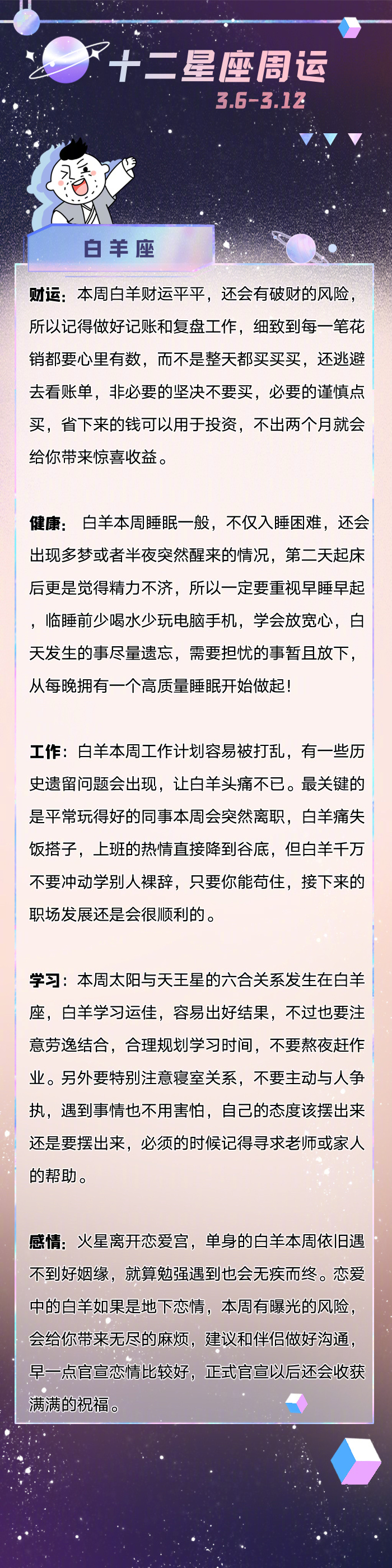 3.12周日,水星六合天王,建议多独立思考,不要过分依赖团队,靠自己的才能和力量也能成功寻找到真理。
