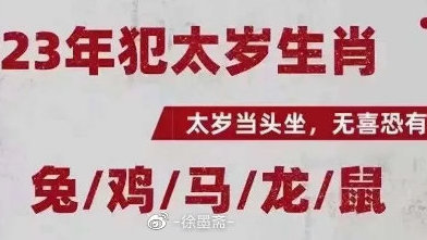 2023年犯太岁生肖:兔、龙、马、鼠、鸡