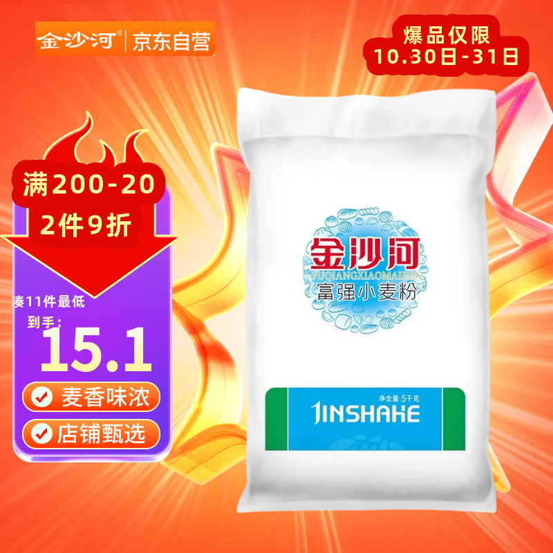 金沙河面粉 富强小麦粉包子馒头水饺手擀面烘焙白面粉 家用面粉10斤