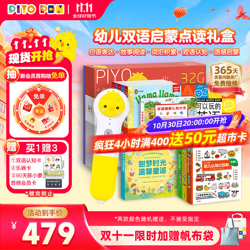 PIYO PEN小鸡球球AI智能点读笔32G幼儿双语启蒙礼盒早教玩具生日礼物