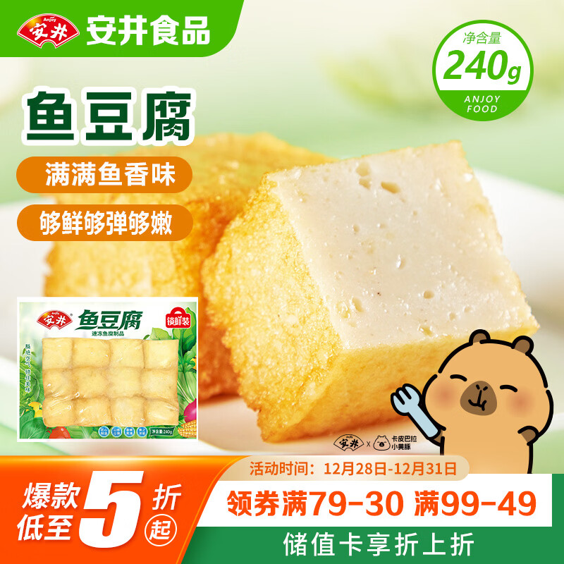 安井锁鲜装鱼豆腐 240g 1包 鱼糜含量≥65% 火锅麻辣烫关东煮食材
