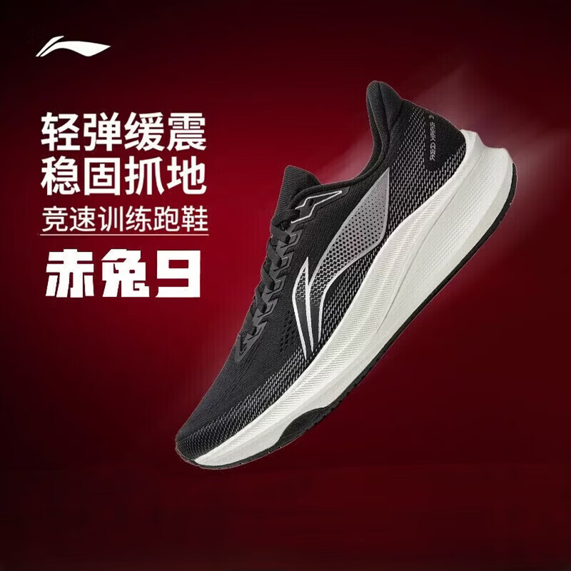李宁赤兔9竞速训练跑鞋男26春季新款轻量体测耐磨运动鞋ARPW003 百亿 黑色/乳白色-6 41 (255mm)