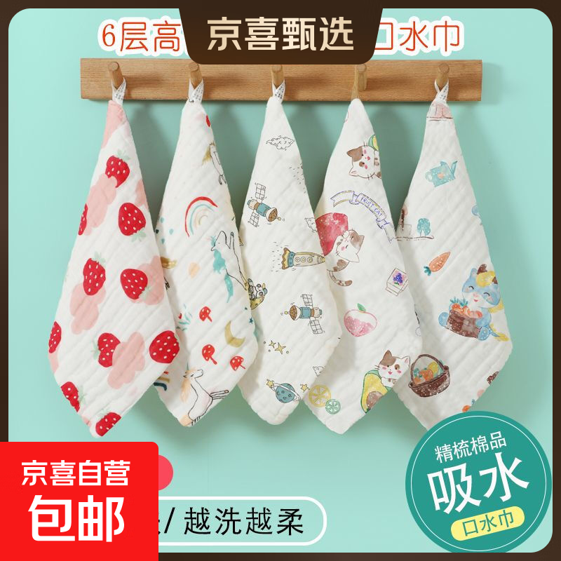 纯棉纱布六层儿童毛巾婴幼儿高密不掉毛洗脸面巾新生儿口水巾超软 25*25cm小方巾6层花色随机 5条装