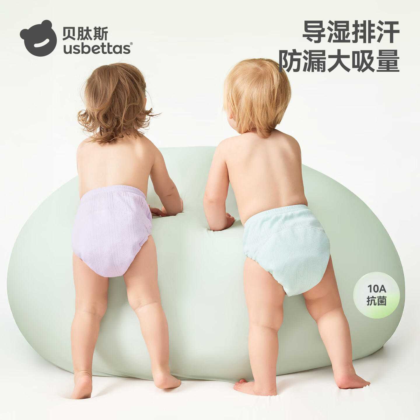 贝肽斯如厕训练裤男女宝宝儿童尿布纯棉防侧漏透气可洗婴儿内裤戒尿不湿 绿色 2条装 (5A抗菌) [适合15个月以上]24-36斤