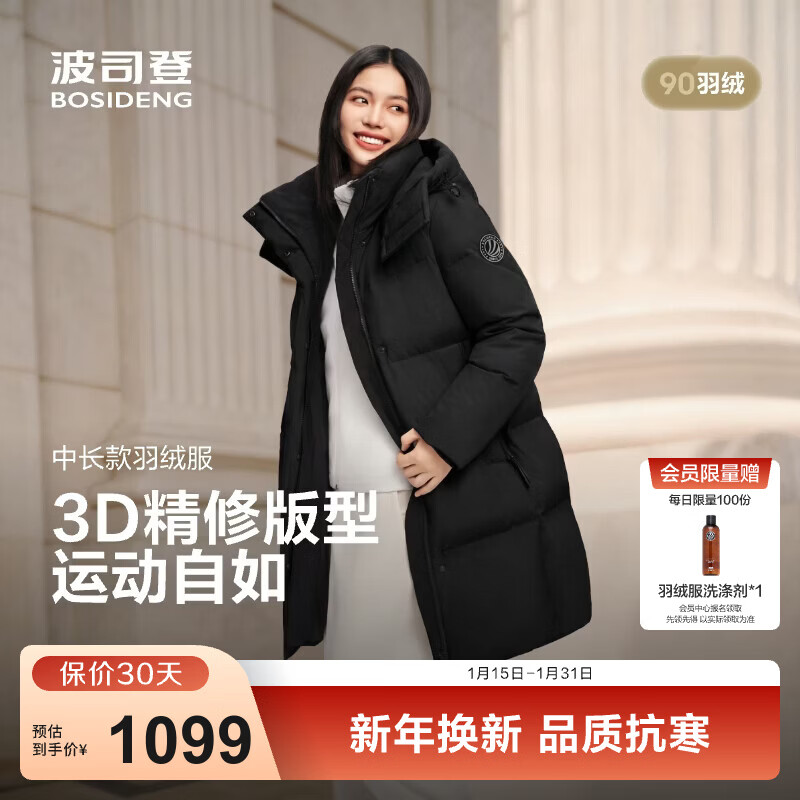 波司登(BOSIDENG)25新款羽绒服男女同款运动系列中长款宽松加厚学生面包服外套 黑色|8056 卡码拍大 S 160/84A 体重约100-110斤