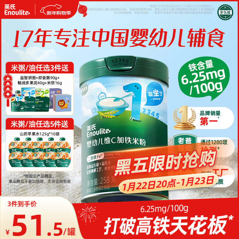 英氏婴幼儿高铁米粉糊维C加铁原味258g宝宝辅食低敏6-12个月老爸抽检