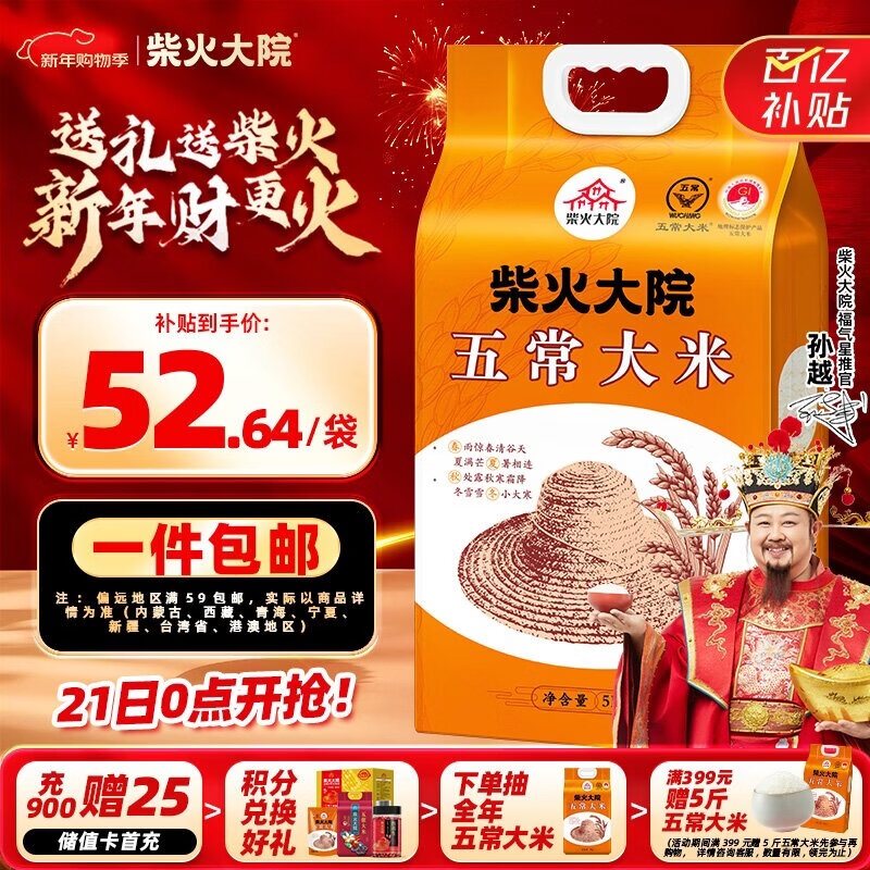 柴火大院 25年新米上市 五常大米 10斤 (东北大米 五常稻香米 5kg)