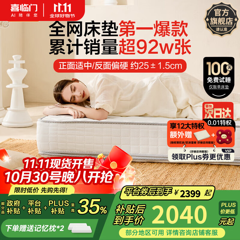 喜临门白骑士床垫政府补贴加厚进口乳胶护脊黄麻 独袋弹簧家用 白骑士plus【指定尺寸闪送】 1.8*2米