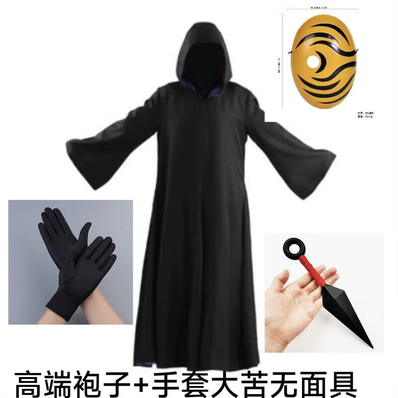 ONEVAN阿飞cos服带帽虎皮宇智波鼬带土衣服黑斗篷虎皮面具男 虎皮阿飞袍子+手套+面具+大苦无 S(身高155-160cm)