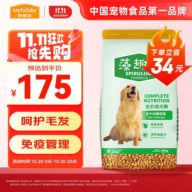 麦富迪 狗粮 藻趣儿通用全价犬粮小中大型犬泰迪柯基金毛拉布拉多 【热销】成犬粮40斤装