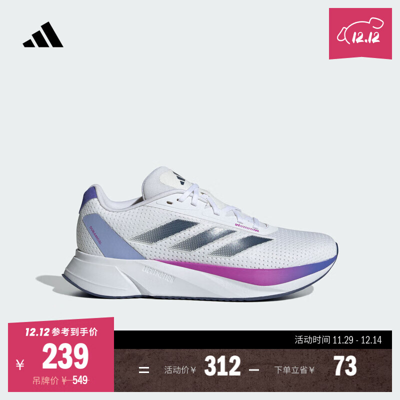 adidas DURAMO SL训练备赛舒适网面体测跑鞋女子阿迪达斯 白色/灰蓝/紫色 40