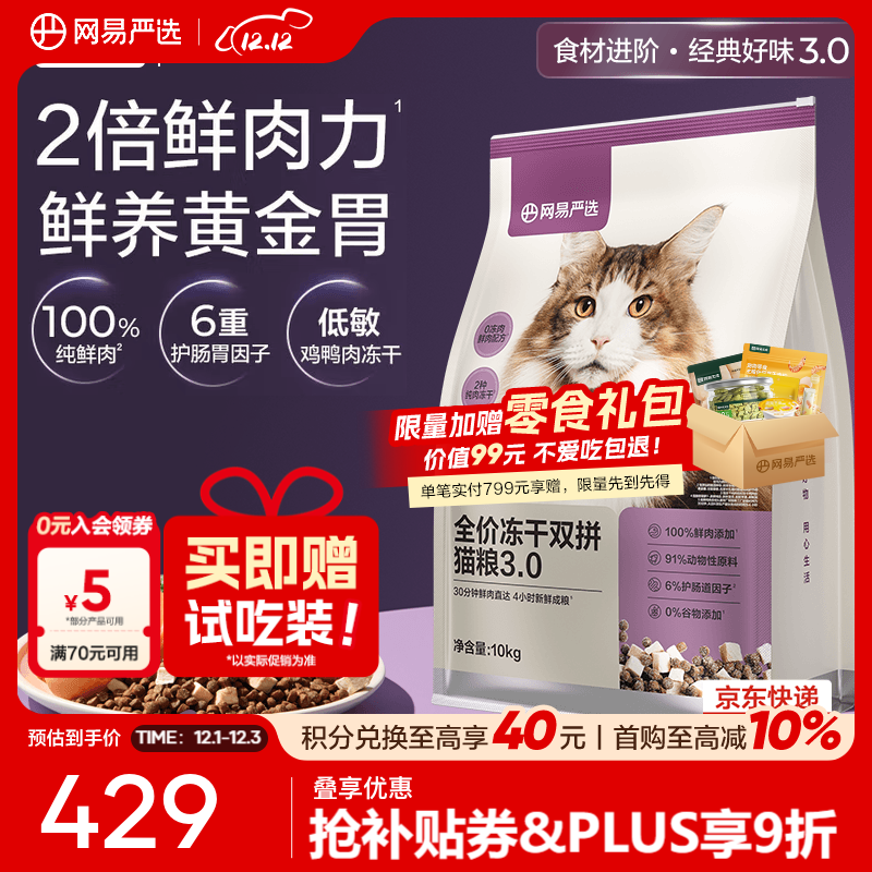网易严选猫粮全价冻干双拼猫粮 主粮幼猫成猫无谷猫咪粮 【囤货】 3.0进阶款 10kg*1袋