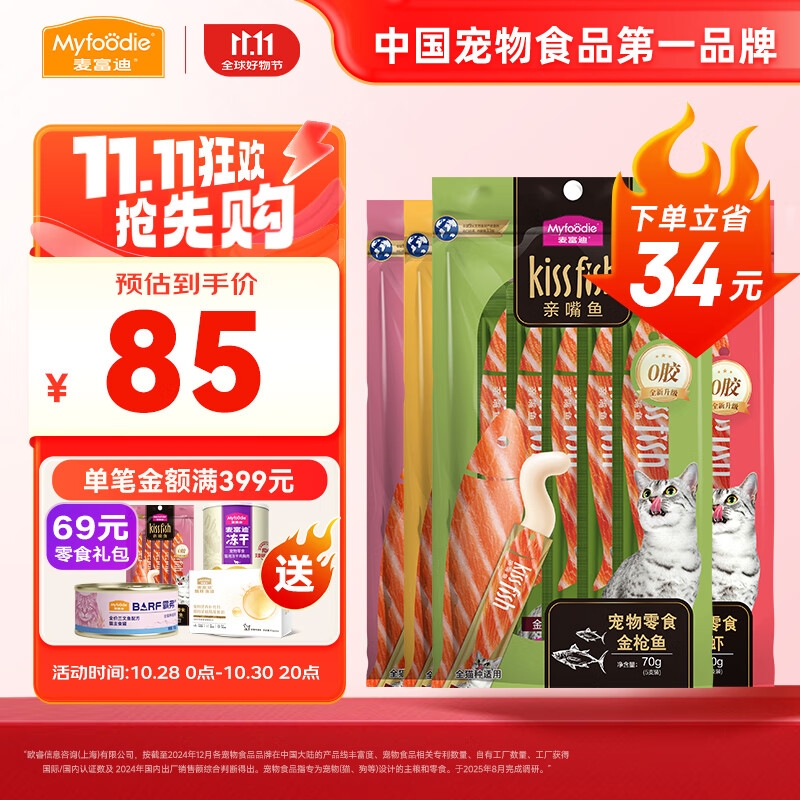 麦富迪 猫条 猫零食成幼猫通用猫咪零食营养猫湿粮 【力荐】四口味混合装14g*100