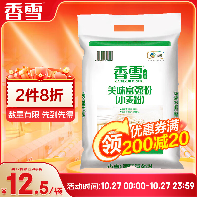 香雪面粉 美味富强粉 小麦粉 中筋面粉10斤