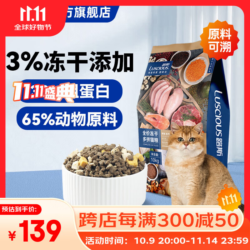 路斯冻干三拼猫粮10kg成猫幼猫粮全价营养 【鸡&鸭】冻干三拼猫粮10kg