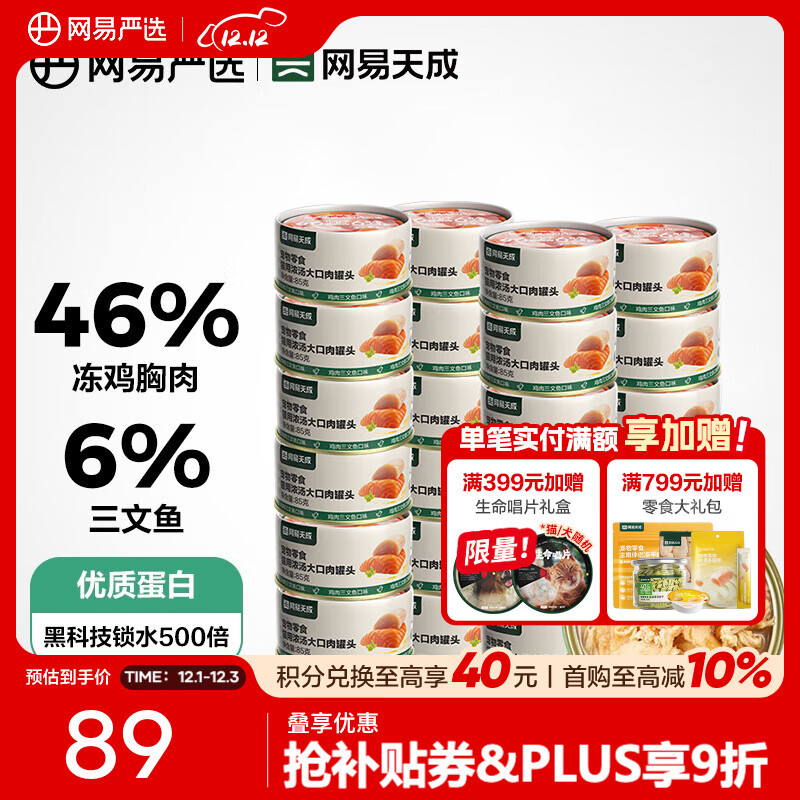 网易严选 宠物零食 成猫幼猫湿粮猫零食猫用浓汤大口肉罐头 【大肉粒】鸡肉三文鱼味 85g*24罐