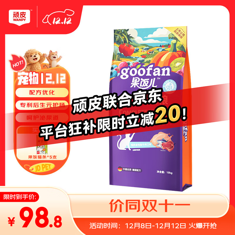 顽皮猫粮 果饭儿冻干双拼粮 出口级全价成猫粮全阶段幼猫粮 醇鲜升级 【配方优化】鸡肉金枪鱼牛肉成猫粮10kg