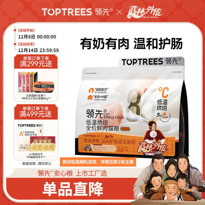 领先烘焙猫粮鲜鸡肉羊奶低温无谷幼猫成猫全阶段猫粮1.5kg原料透明