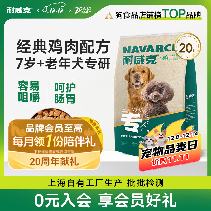 耐威克 通用老年犬狗粮小型犬中大型犬通用7岁以上好吸收鸡肉味10kg