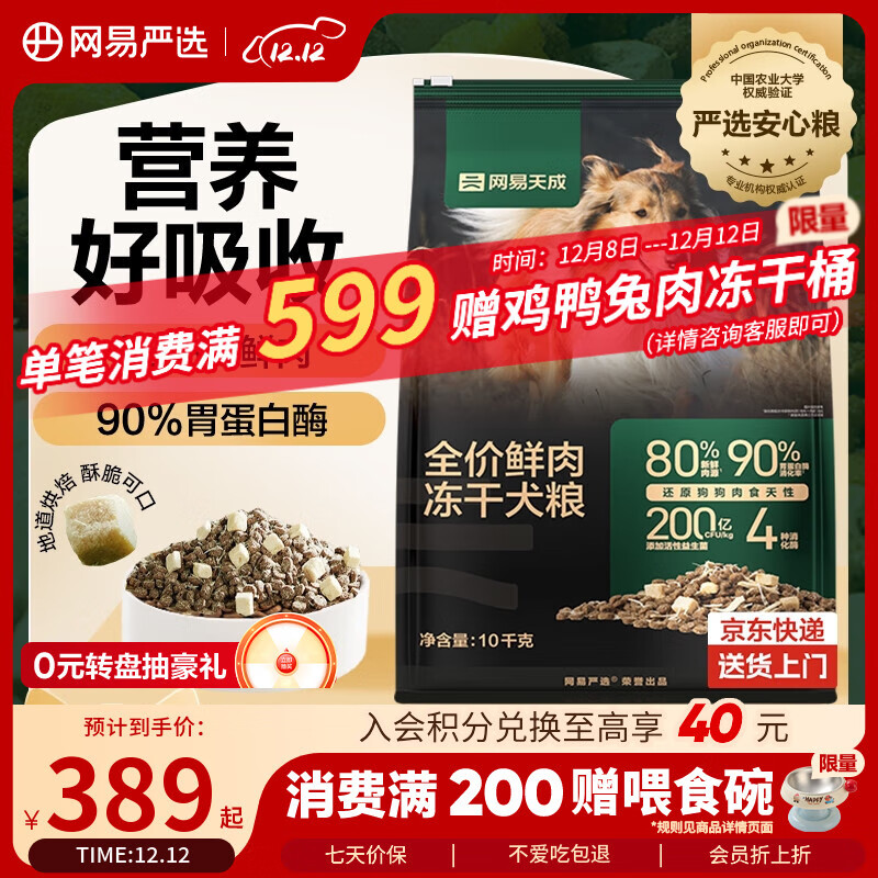 网易严选犬粮 全价高鲜肉冻干双拼幼犬成犬中大型狗粮通用金毛 10kg