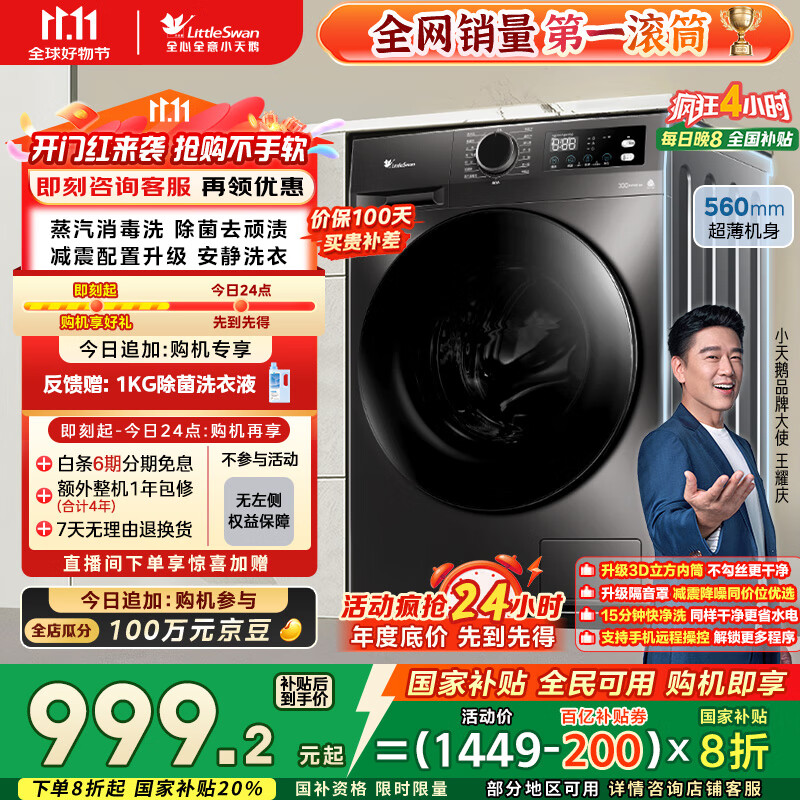 小天鹅(LittleSwan)滚筒洗衣机全自动家用 TG100APUREPRO 懒人超薄10公斤 以旧换新 家电国家补贴20% 一级能效 内衣洗
