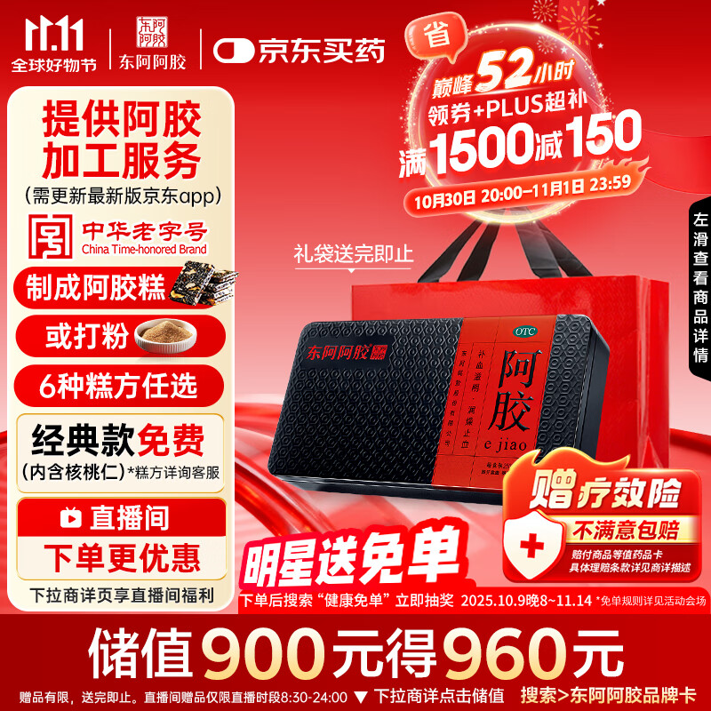 东阿阿胶阿胶250g 熬胶服务 鲜制阿胶糕 补血滋阴 润燥止血用于血虚眩晕不眠
