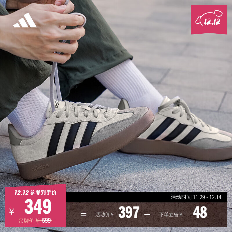 adidas「T头鞋」BARREDA板鞋德训鞋男女阿迪达斯轻运动 灰色/黑色/树脂黄 42