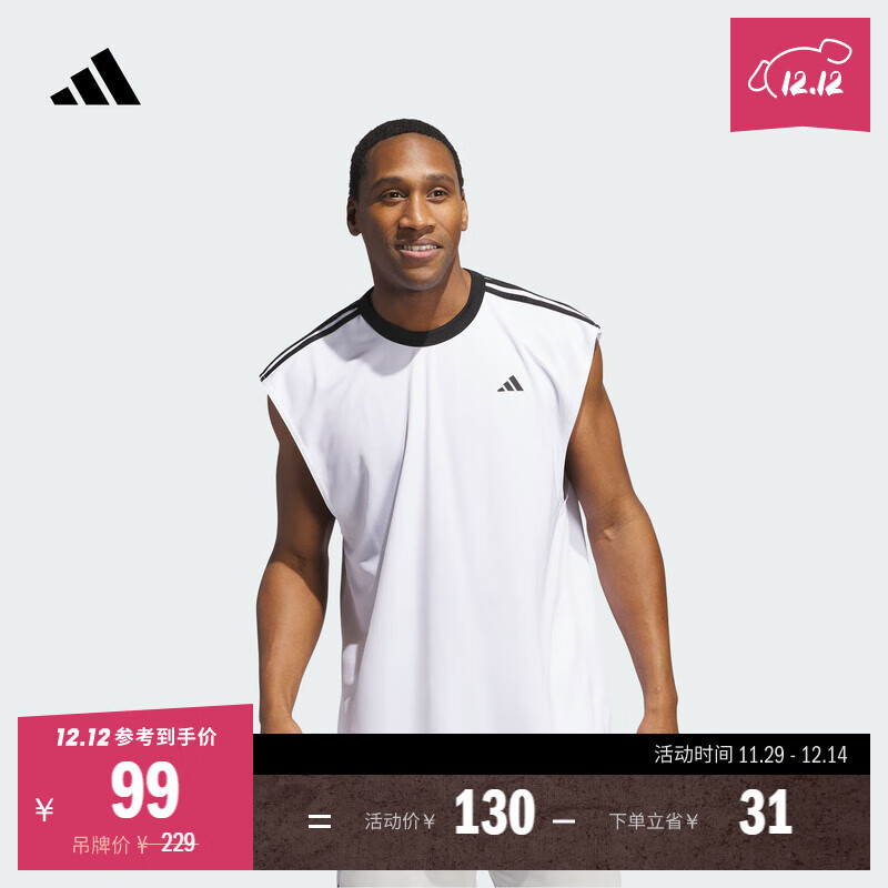 adidas速干简约舒适无袖篮球运动圆领背心男装阿迪达斯官方JE9290 白/黑色 XL