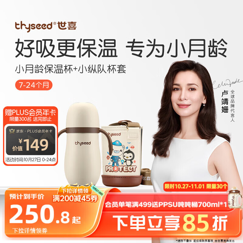 世喜婴儿保温杯幼儿小月龄316L不锈钢钢海底小纵队联名款学饮杯幼儿园