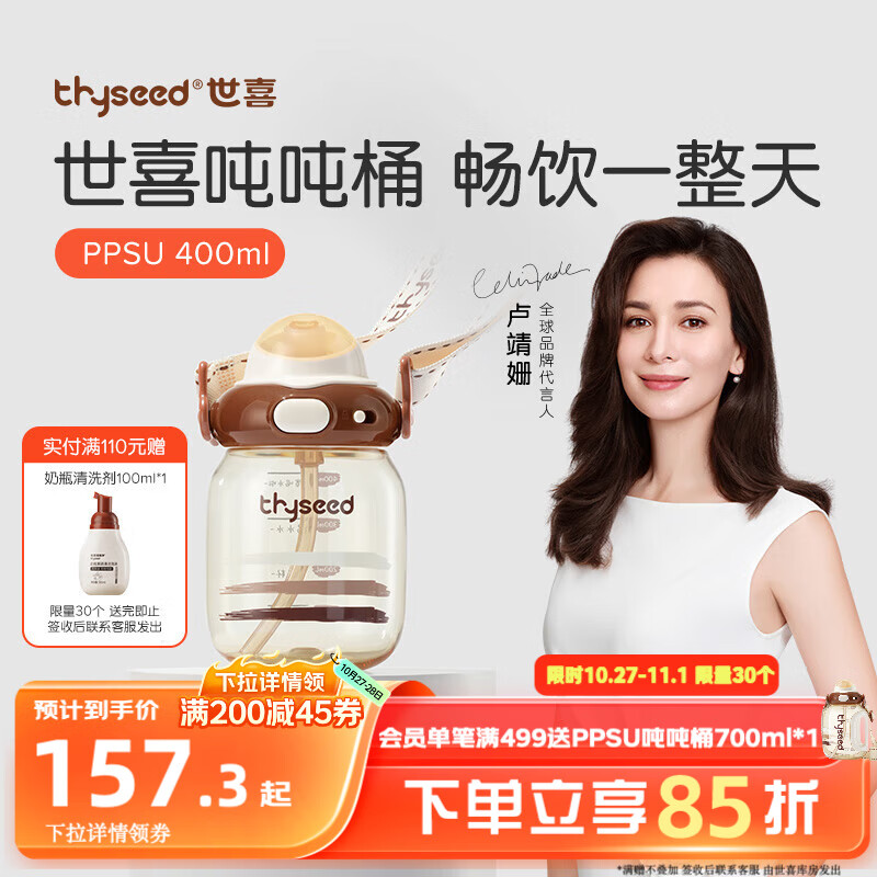 世喜吨吨桶儿童水杯1-3岁直饮吸管杯PPSU大宝宝400ml幼儿园学生水壶