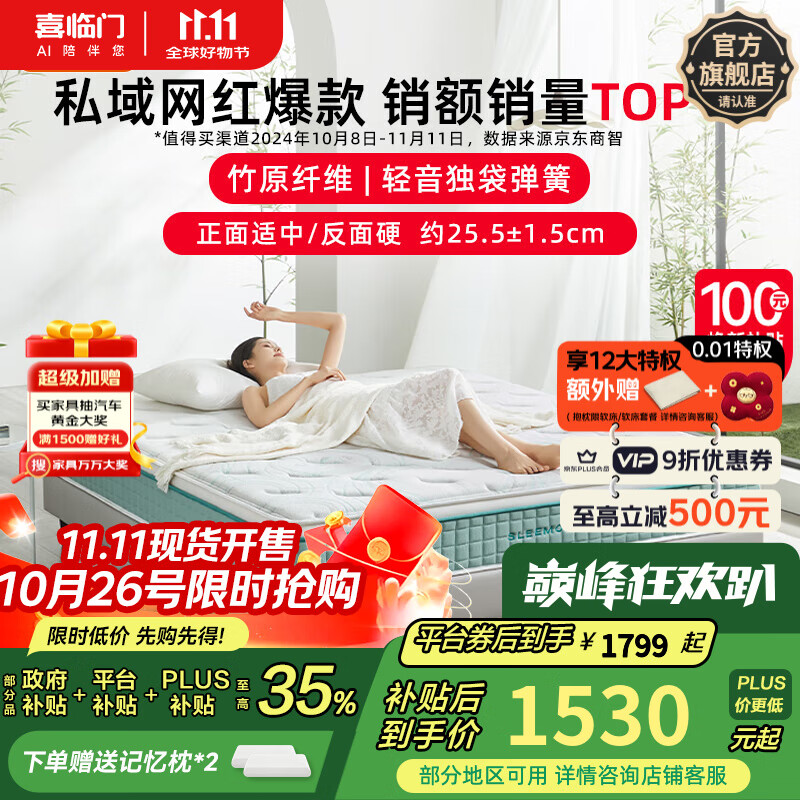 喜临门政府补贴进口乳胶软硬两睡厚垫抗菌防螨独立弹簧床垫席梦思光年 光年plus3.0-厚25.5cm 1.8*2米