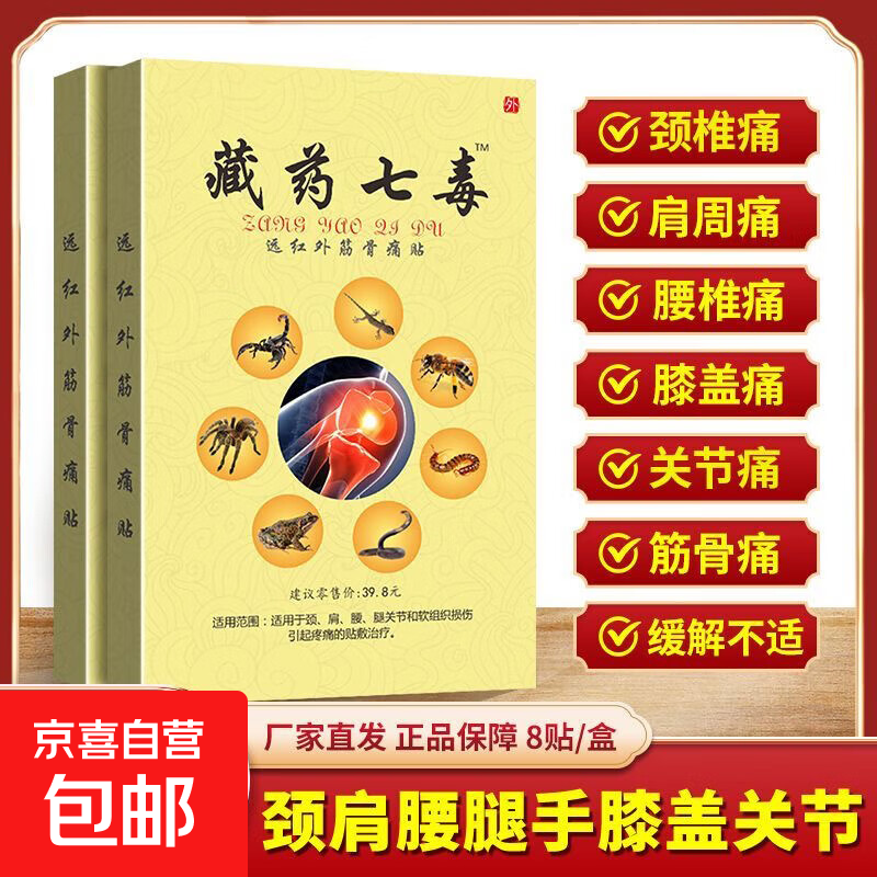 藏药七毒远红外筋骨痛贴颈椎肩周腰椎关节手脚疼痛透骨贴敷膏药贴 藏药七毒8贴*1盒
