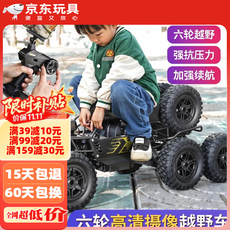 赟娅儿童电动遥控车高速漂移赛车男孩汽车玩具双驱充电攀爬耐摔越野车 39cm合金六轮【带摄像+VR】 儿童考试奖励暑假礼物