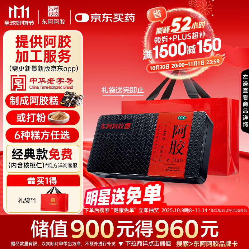 东阿阿胶 阿胶250g 熬胶服务 鲜制阿胶糕 补血滋阴 润燥止血用于血虚萎黄眩晕心悸心烦不眠肺燥咳嗽