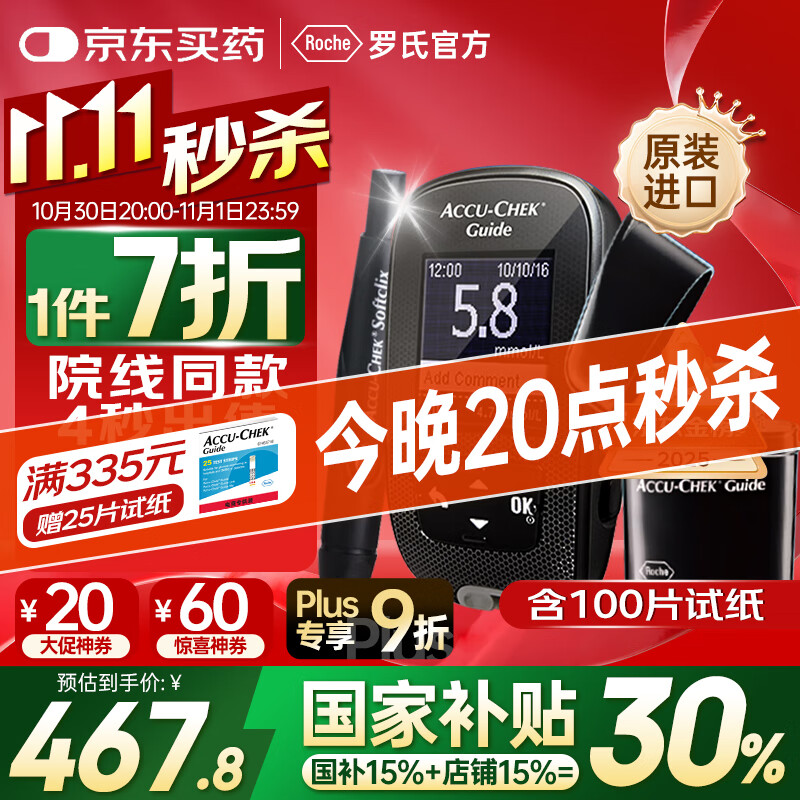 罗氏血糖仪智航型检测仪免调码家用医用高精准低痛监测仪(100片装)