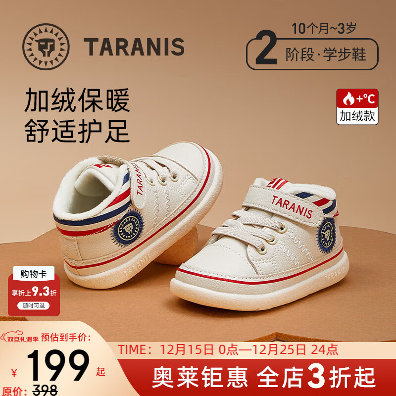 泰兰尼斯秋冬季新款学步鞋中高帮男宝宝鞋气泵防滑防踢机能鞋子 米白 冬款加绒选大一码 24 鞋内长15.5cm适合脚长14.5