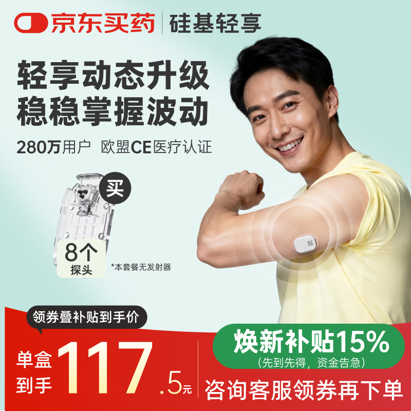 硅基动感轻享分体式可复用动态血糖仪家用24小时检测不扎手指免扎针血糖仪 8个探头【不含发射器】