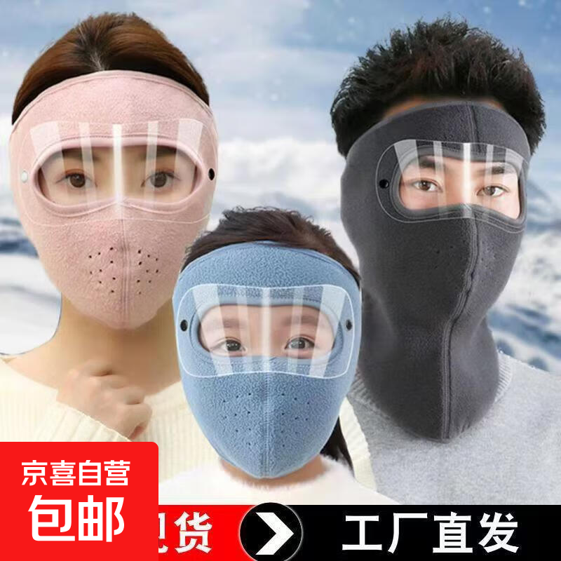 骑行保暖帽子冬季防风面罩摇粒绒全脸一体脖套头套摩托车防冻防寒 【防寒面罩含护目镜】短款-1套