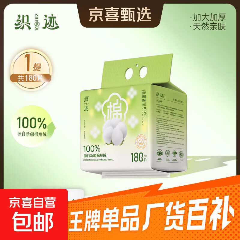 织迹 洗脸巾100%新疆棉短绒洗脸巾一次性棉柔巾婴儿擦脸巾悬挂式 【面膜级超柔】新疆棉短绒洗脸巾180片*1包