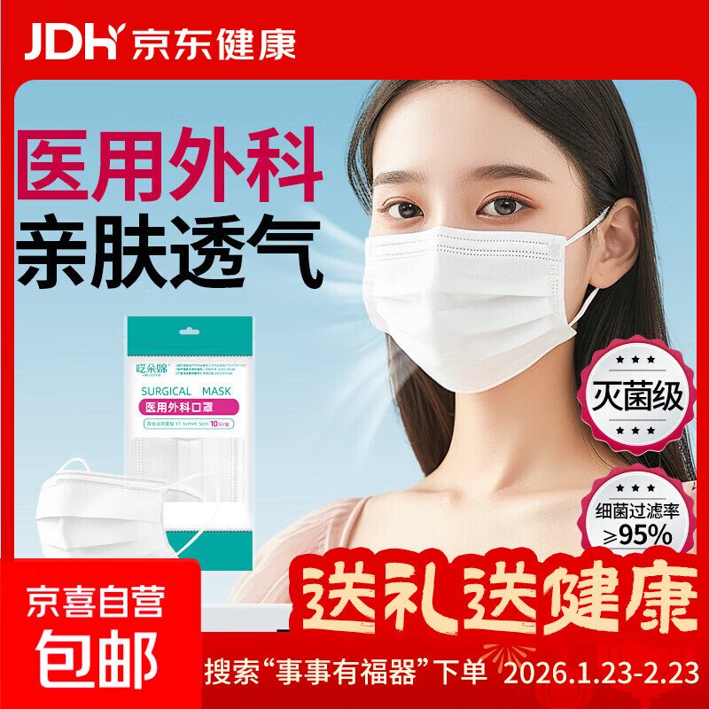 一次性成人医用外科口罩10只/袋 含熔喷布三层防护亲肤透气防飞沫 医用外科口罩10只装(白色)