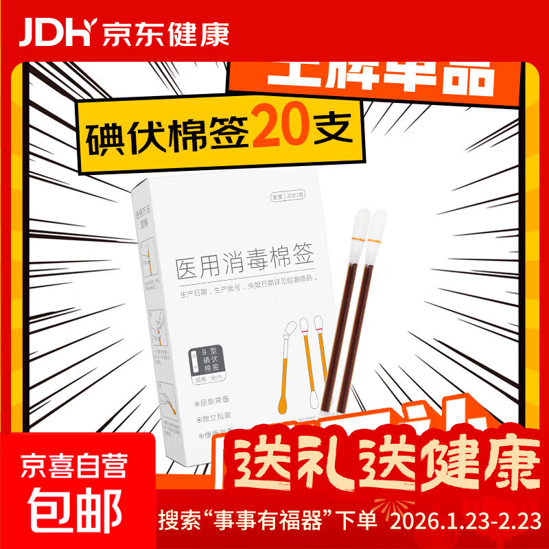 医用碘伏棉签碘伏棉棒酒精消毒液棉签消毒杀菌婴幼儿肚脐伤口护理 碘伏棉签【1盒】20支/盒