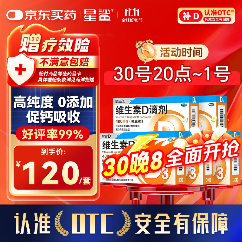 星鲨维生素d3滴剂(胶囊型)30粒*5盒【150粒】d3婴儿婴幼儿儿童成人维生素D促钙吸收补钙长高非维生素ad